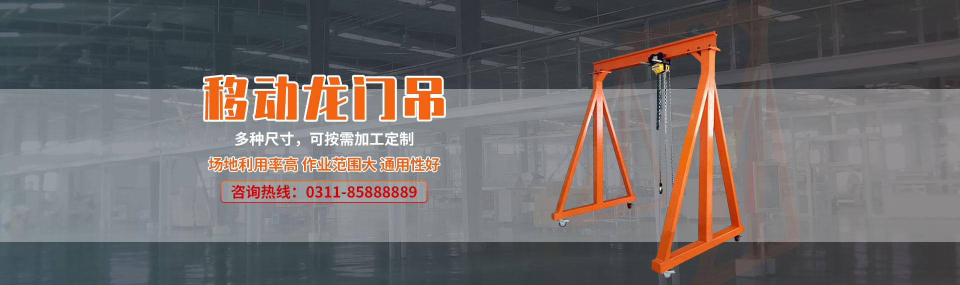 成華牌龍門吊架在工業生產車間更具靈活機動、適應性廣等特點,在工業裝備的搬運挪移中是高效自動生產線上必備的單獨應急吊裝設備,有了它能確保生產線暢通無阻。